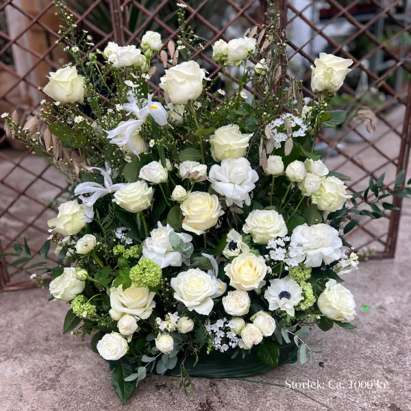 Bilderna är enbart en uppskattning på storlek, alla dekorationer är unika. Pris, färger och eventuella blommor önskas själv av kunden.