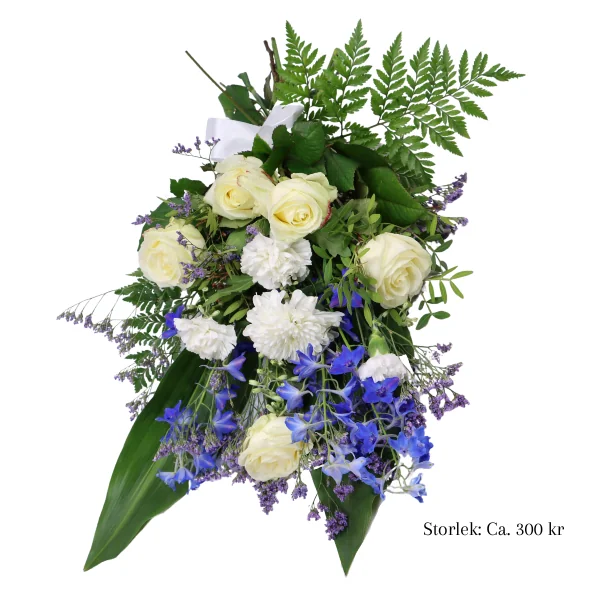 Bilderna är enbart en illustration på storlek, alla begravningsbuketter är unika. Pris, färger och eventuella blommor önskas själv av kunden.