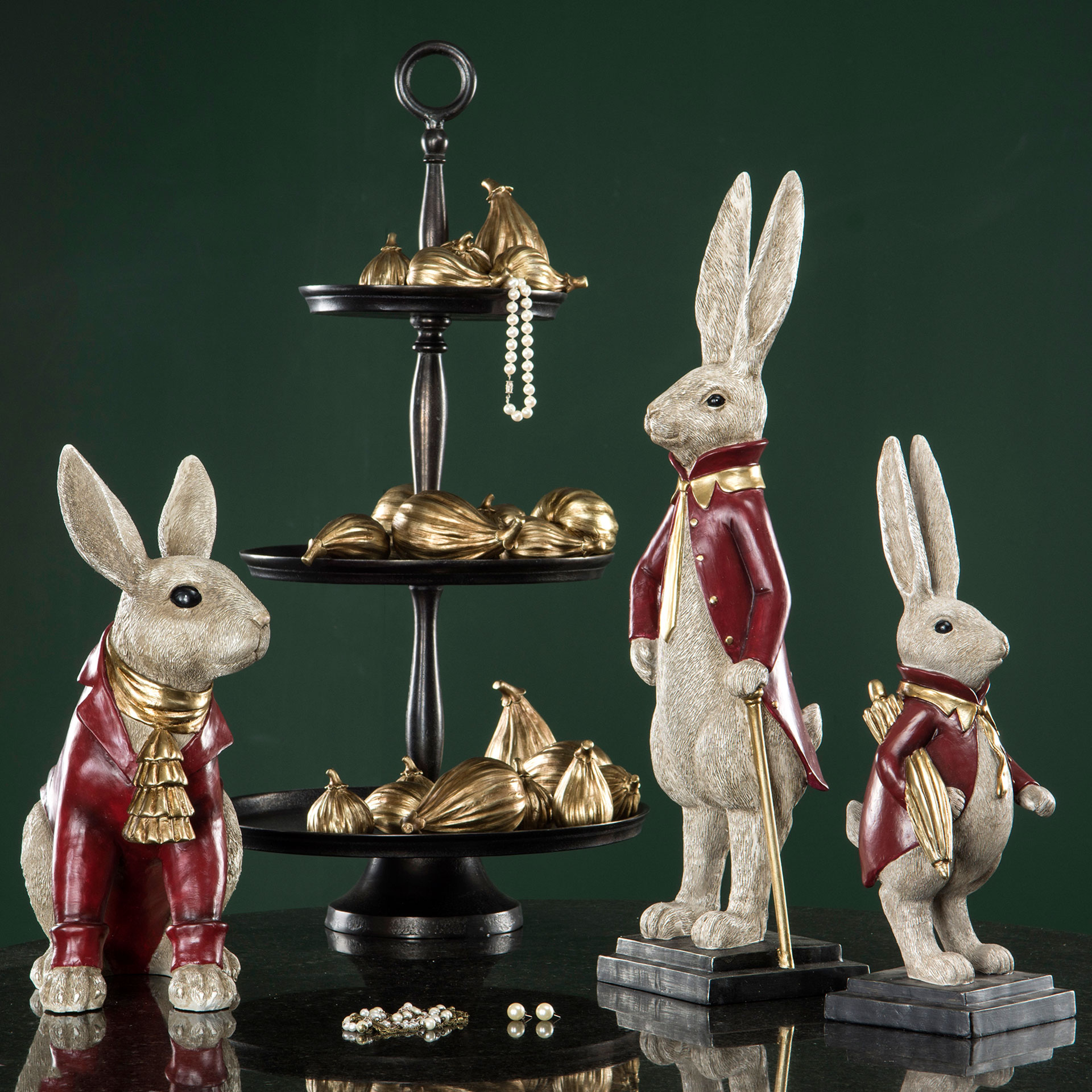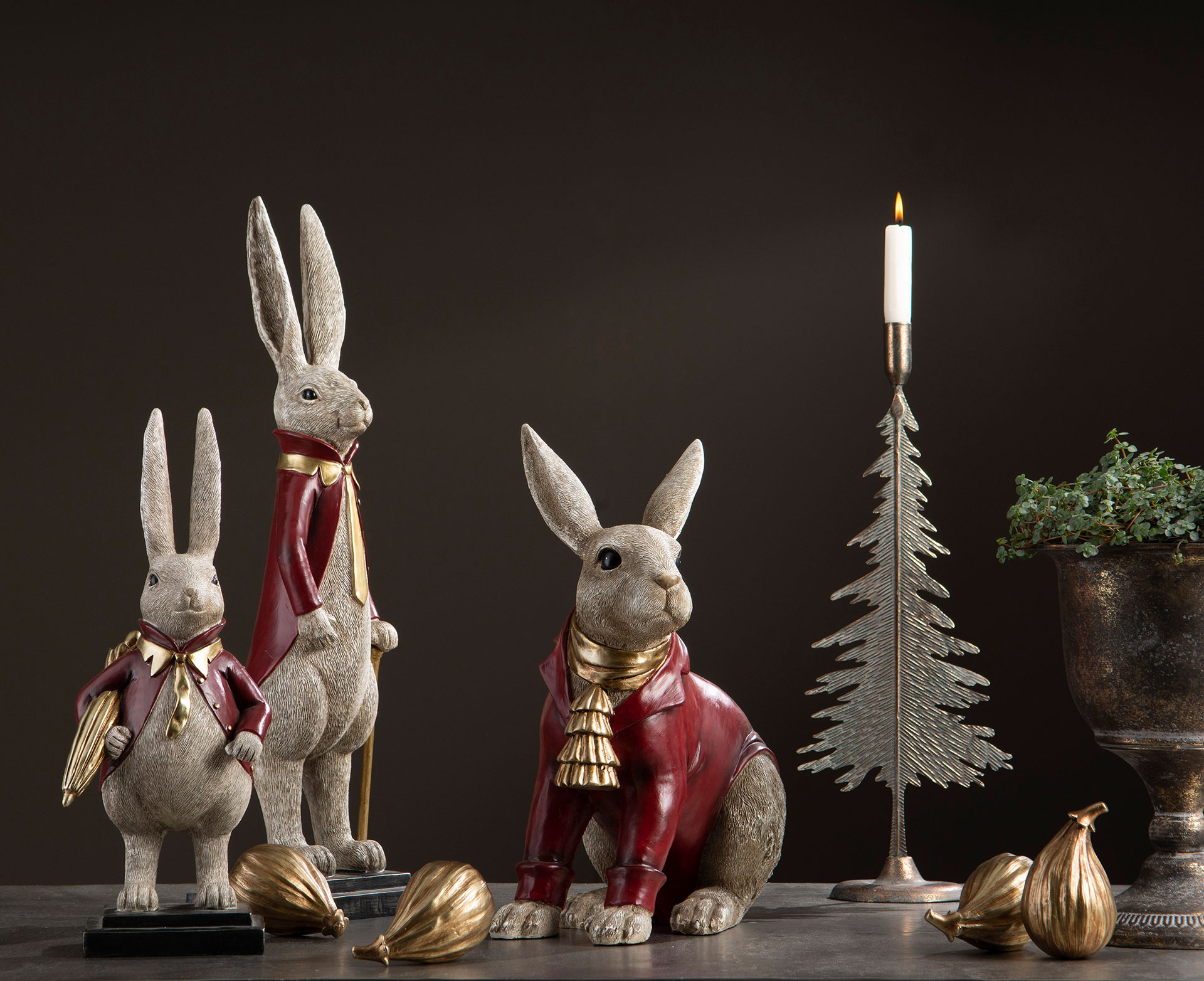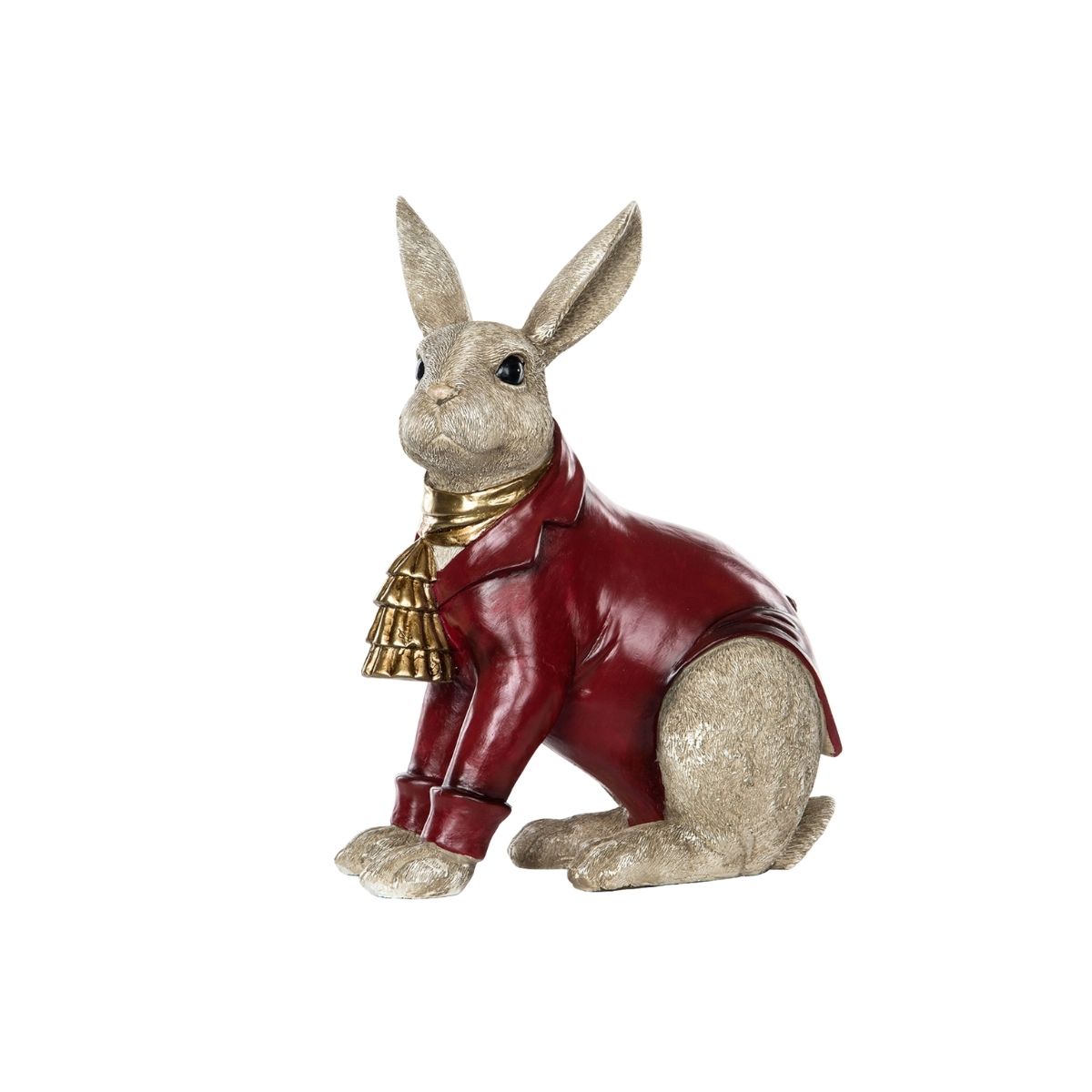 En söt kanin i kavaj och halsduk som blir en rolig och dekorativ detalj i hemmet. Perfekt att ställa på en hylla, byrå eller som en del av en lekfull juldekoration. Tillverkad av poly.