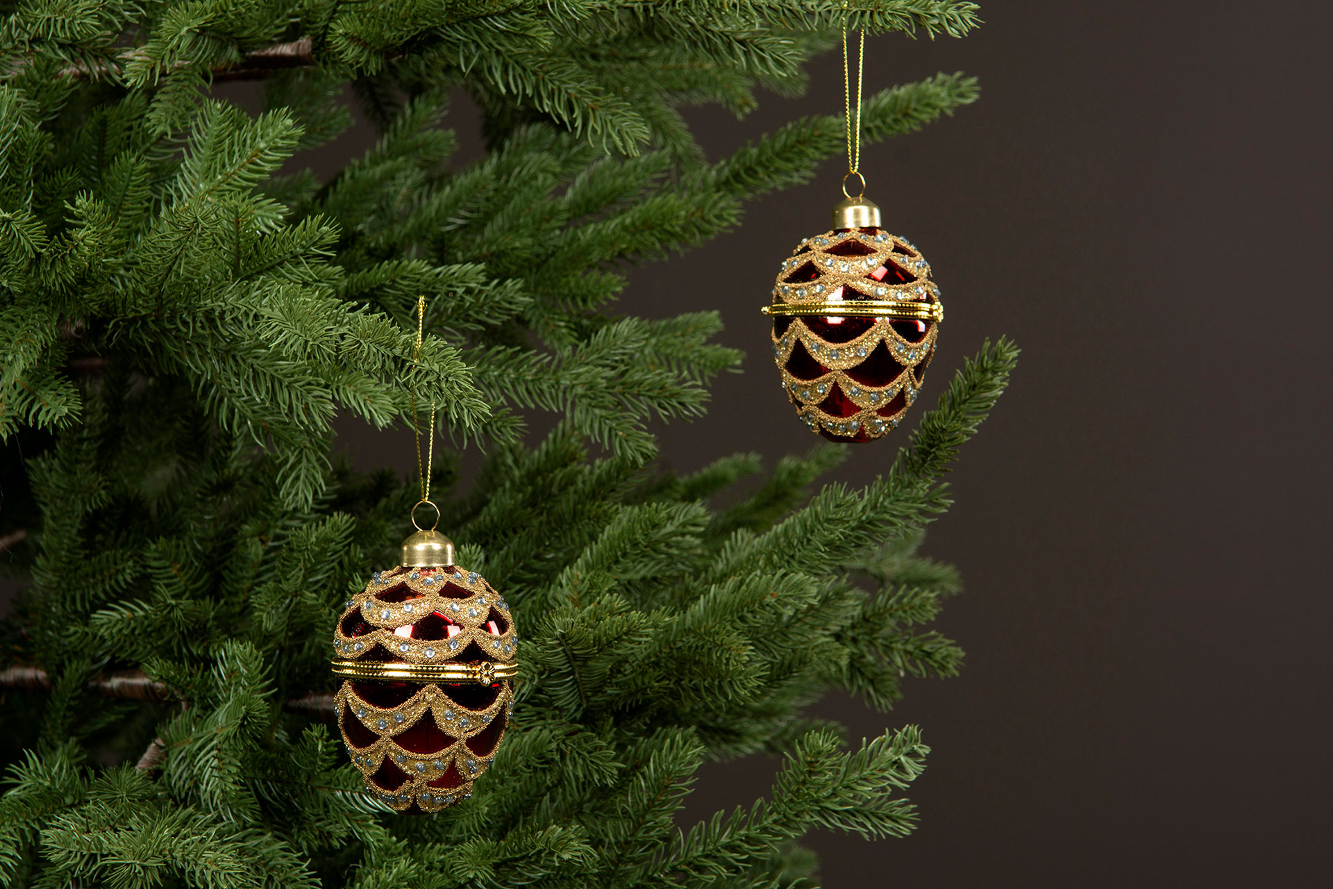 Ett dekorativt glitterägg som går att öppna, passar perfekt att hänga i julgranen. Tillverkat av glas.