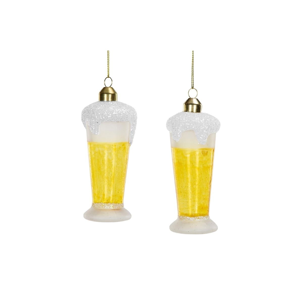 En glashängdekoration som ser ut som ett ölglas. Passar perfekt för den med humor eller för att skapa variation i granen. Tillverkad av glas.