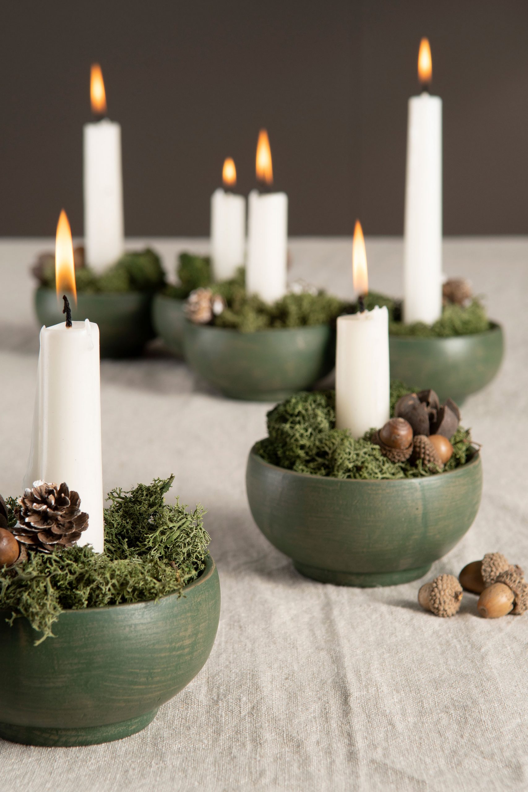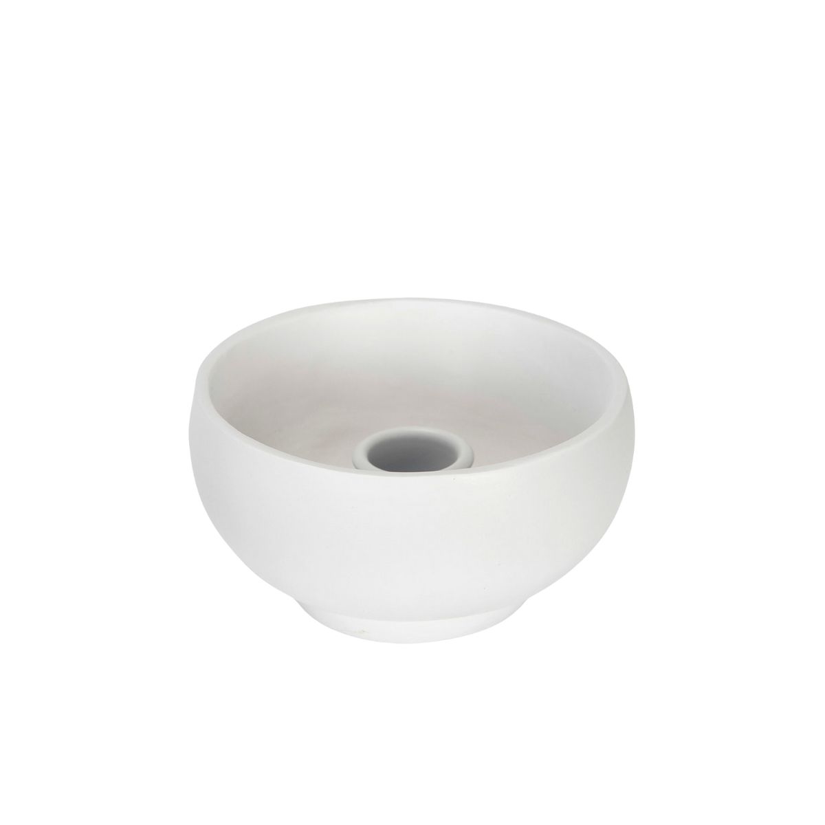 En vit ljushållare med skål som kan fyllas med mossa, kottar eller andra dekorationer för att skapa en personlig detalj. Perfekt för bordet, hyllan eller adventsarrangemang. Tillverkad i poly.