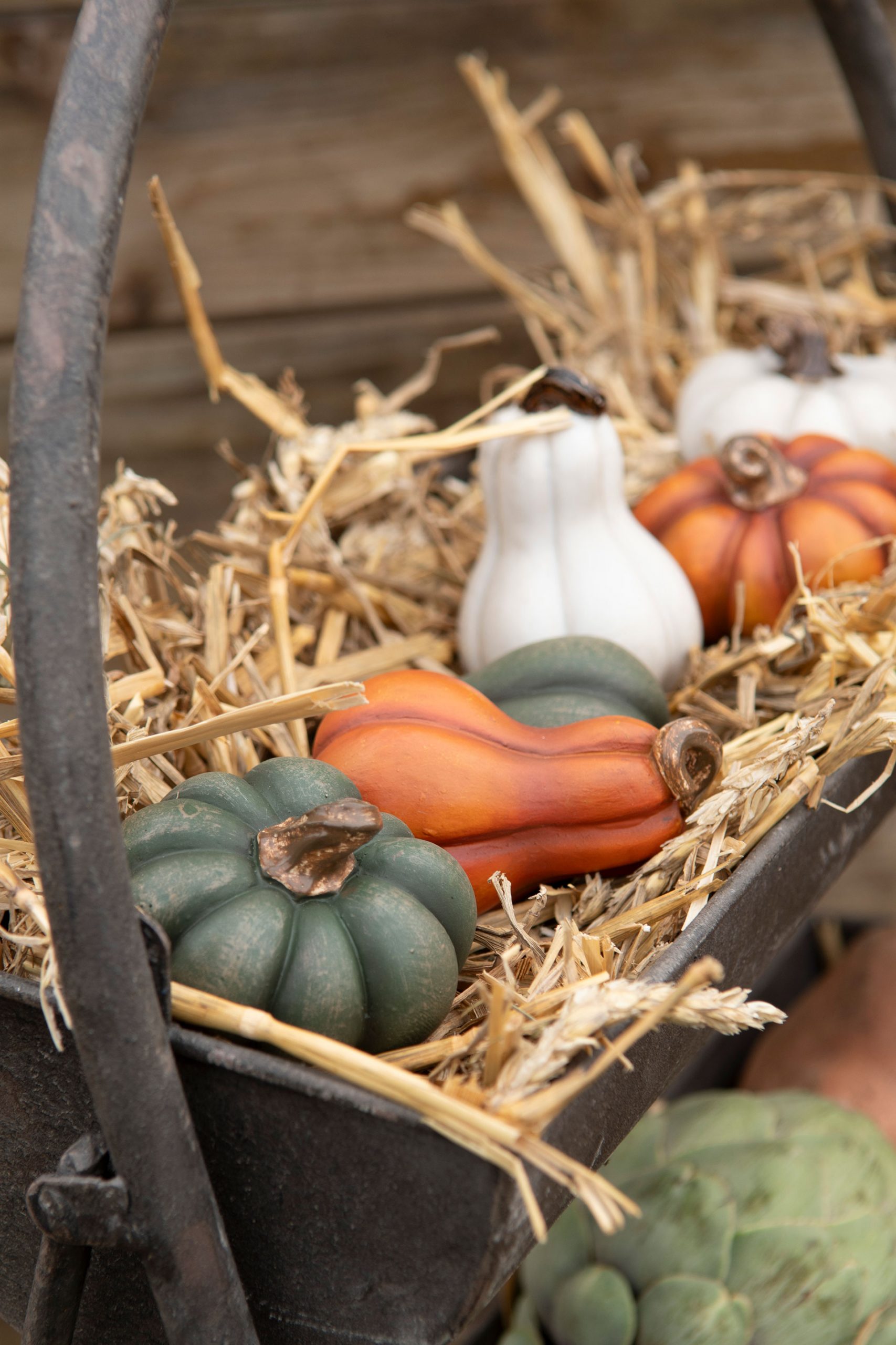 Denna dekorationspumpa i grön, 5×8 cm, är ett enkelt sätt att ge hemmet en varm höstkänsla. Använd den som bordsdekoration, i ett arrangemang eller kombinera med fler pumpor för en enhetlig look. Tillverkad i poly för lång hållbarhet.