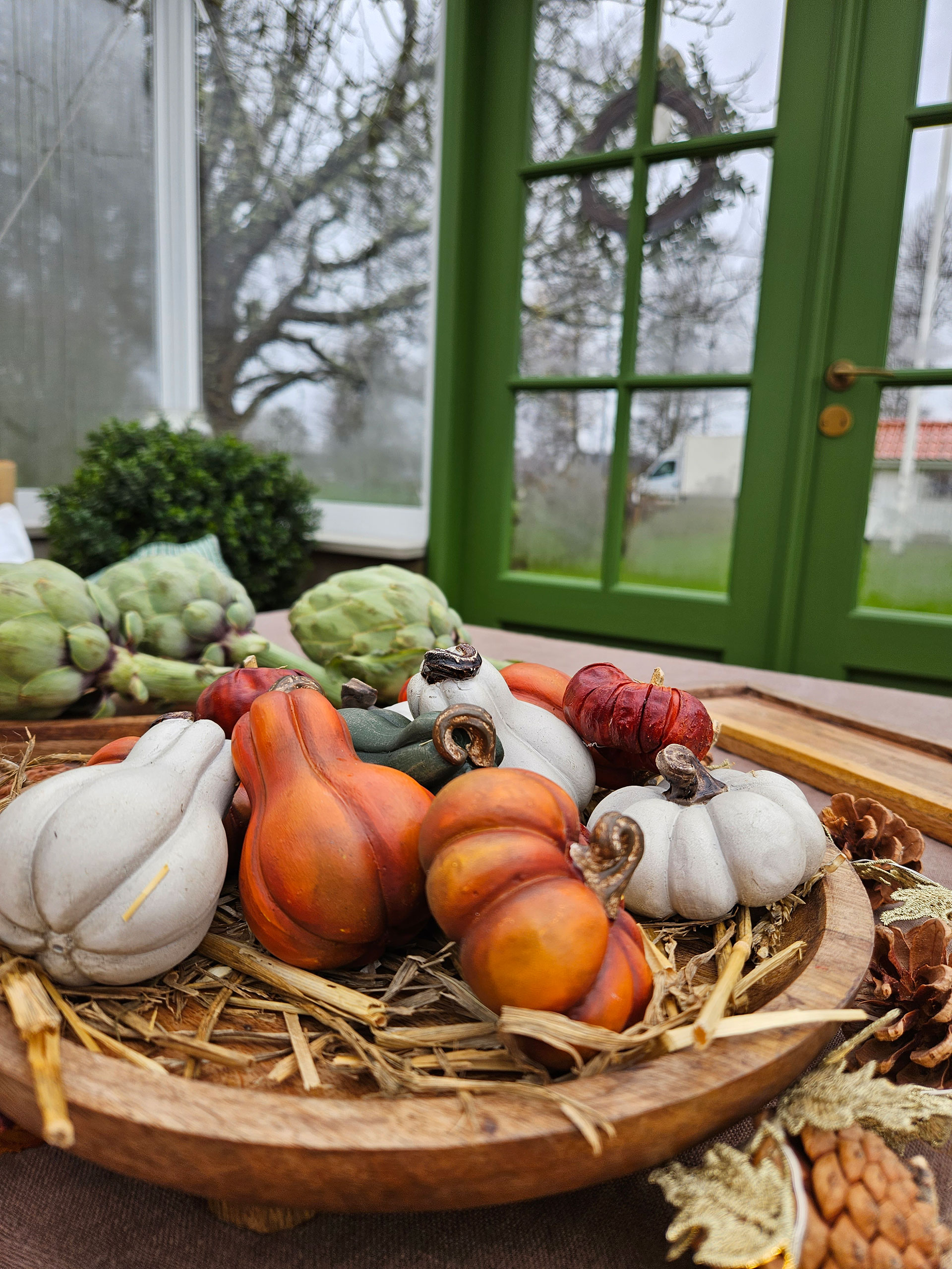 Skapa höststämning med en dekorativ minipumpa i orange. Perfekt till dukningen eller tillsammans med andra höstdekorationer.