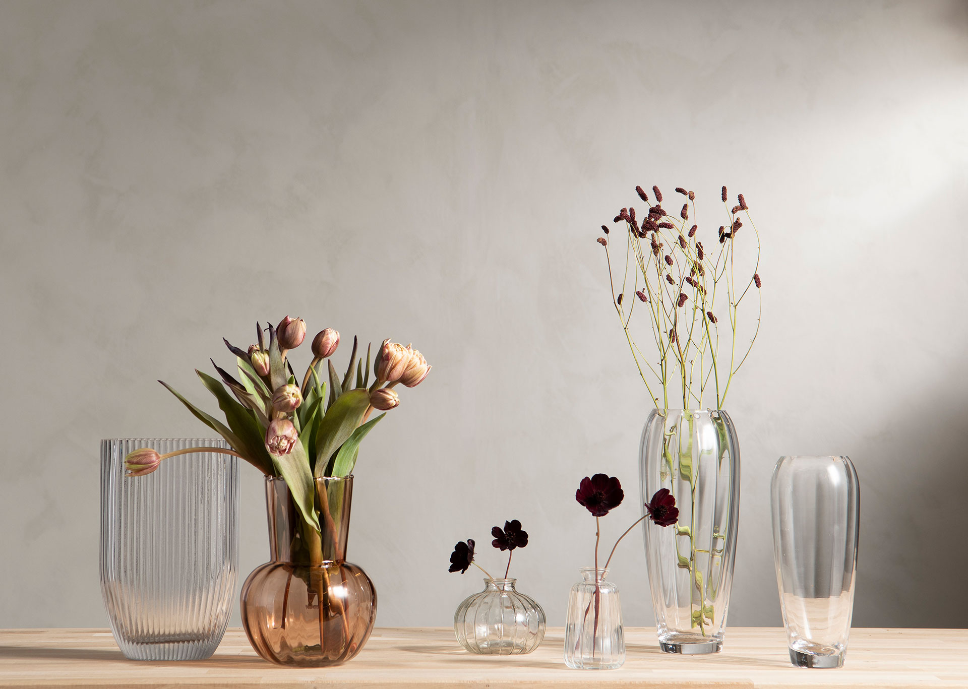 Kamelia är en dekorativ vas i glas på 21 cm, med en mjuk brunrosa färg. Den lyfter fram både färgglada buketter och enkla kvistar och blir en fin detalj i alla rum.