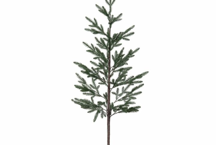 Glasvas i brunrosa ton för blommor och gröna kvistar.